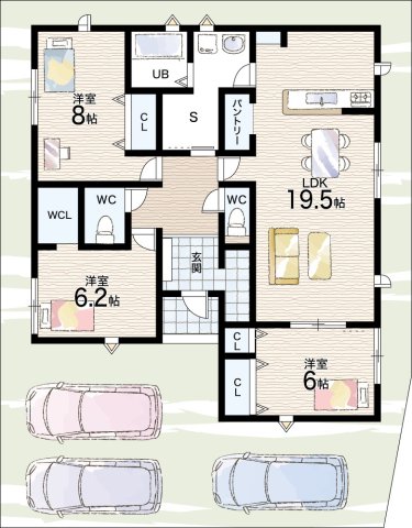 - ※完成予想図やCG合成画像は、門塀・植栽・庭・外観等、実際とは多少異なる場合があります。