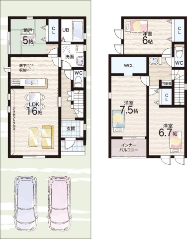- ※完成予想図やCG合成画像は、門塀・植栽・庭・外観等、実際とは多少異なる場合があります。