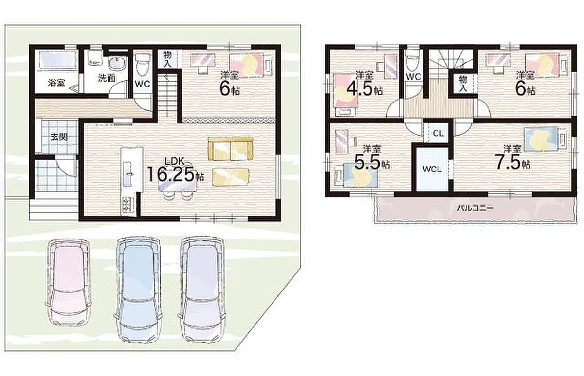 - ※完成予想図やCG合成画像は、門塀・植栽・庭・外観等、実際とは多少異なる場合があります。