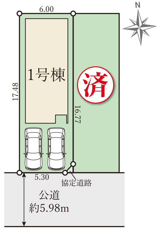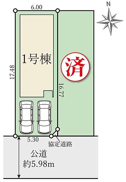 | 駐車場 | 2台 | 道路の幅員 | 南側5.9m公道 |