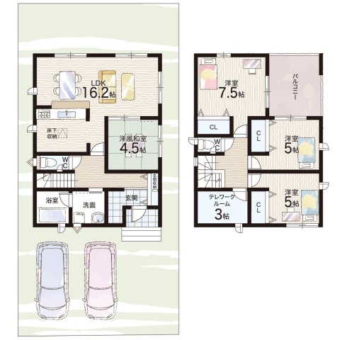 - ※完成予想図やCG合成画像は、門塀・植栽・庭・外観等、実際とは多少異なる場合があります。