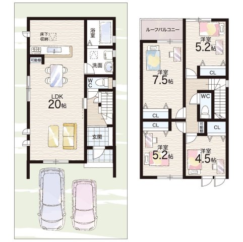 - ※完成予想図やCG合成画像は、門塀・植栽・庭・外観等、実際とは多少異なる場合があります。