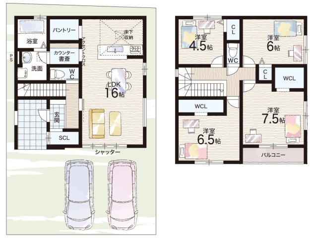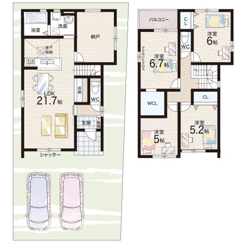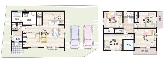 - ※完成予想図やCG合成画像は、門塀・植栽・庭・外観等、実際とは多少異なる場合があります。