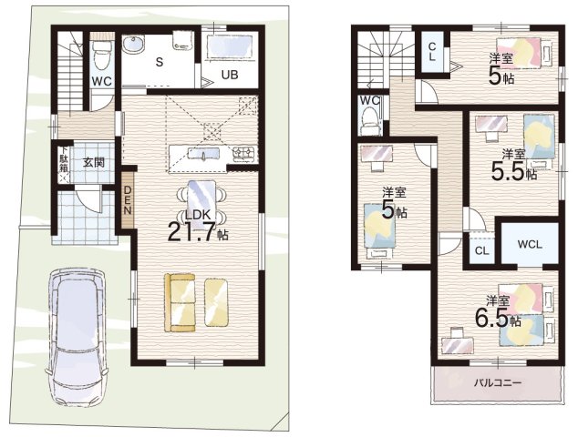 - ※完成予想図やCG合成画像は、門塀・植栽・庭・外観等、実際とは多少異なる場合があります。