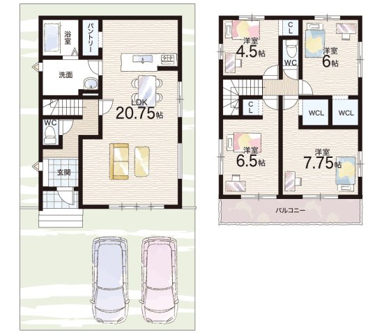- ※完成予想図やCG合成画像は、門塀・植栽・庭・外観等、実際とは多少異なる場合があります。