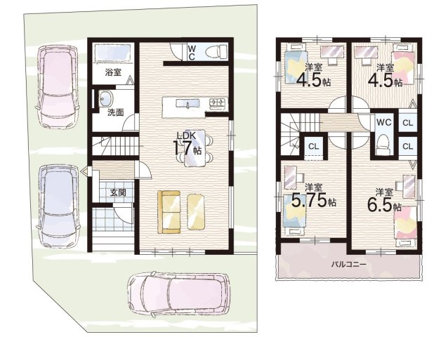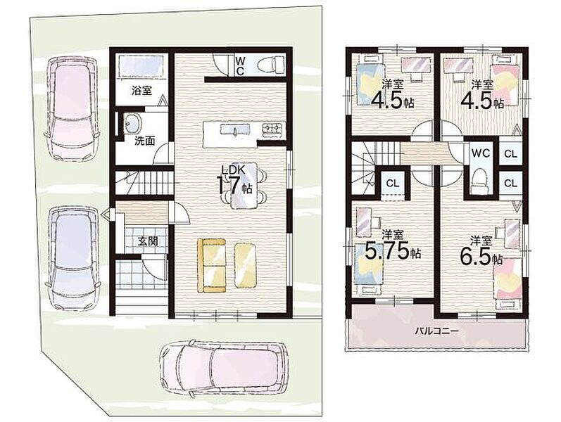 - ※完成予想図やCG合成画像は、門塀・植栽・庭・外観等、実際とは多少異なる場合があります。