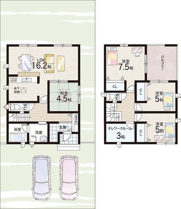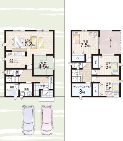 - ※完成予想図やCG合成画像は、門塀・植栽・庭・外観等、実際とは多少異なる場合があります。