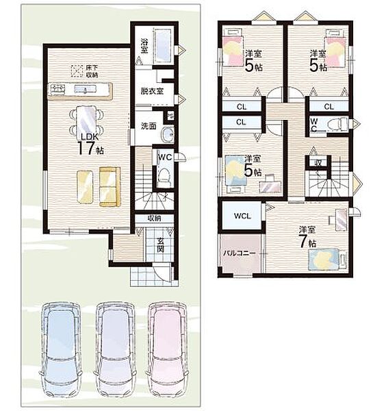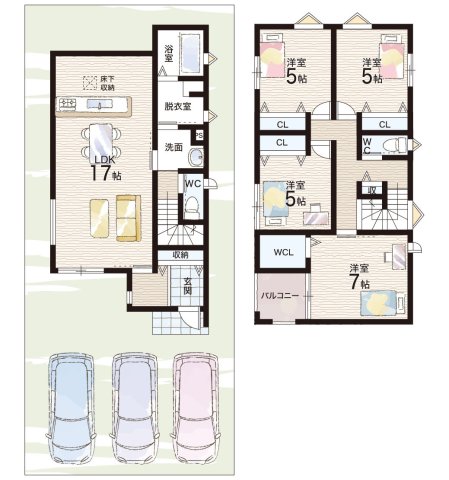- ※完成予想図やCG合成画像は、門塀・植栽・庭・外観等、実際とは多少異なる場合があります。