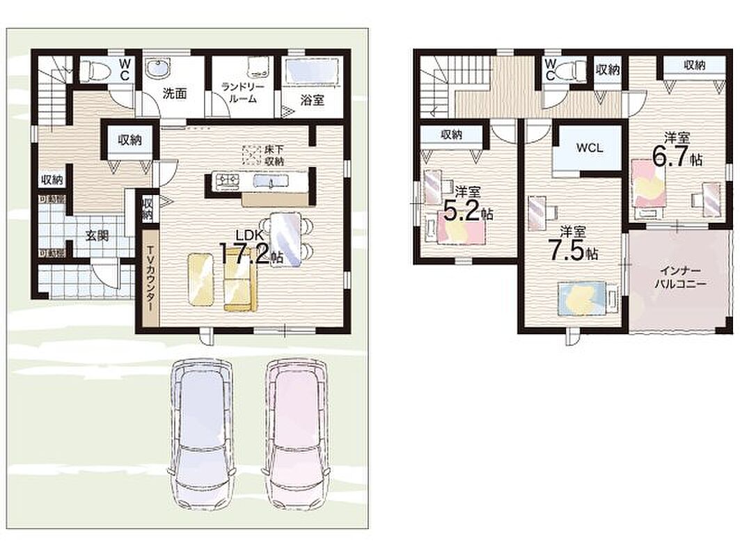 - ※完成予想図やCG合成画像は、門塀・植栽・庭・外観等、実際とは多少異なる場合があります。