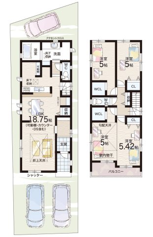 - ※完成予想図やCG合成画像は、門塀・植栽・庭・外観等、実際とは多少異なる場合があります。