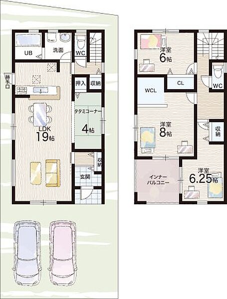 - ※完成予想図やCG合成画像は、門塀・植栽・庭・外観等、実際とは多少異なる場合があります。