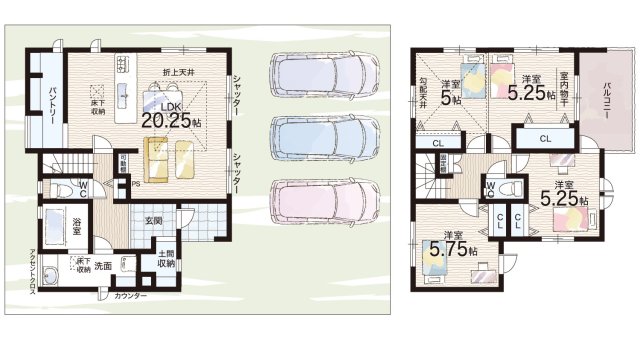 - ※完成予想図やCG合成画像は、門塀・植栽・庭・外観等、実際とは多少異なる場合があります。