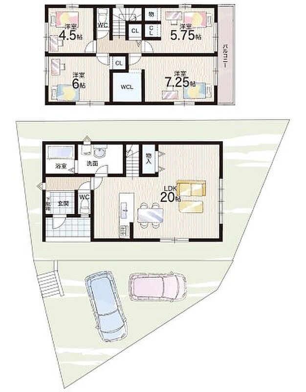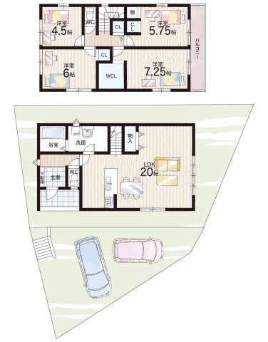 - ※完成予想図やCG合成画像は、門塀・植栽・庭・外観等、実際とは多少異なる場合があります。