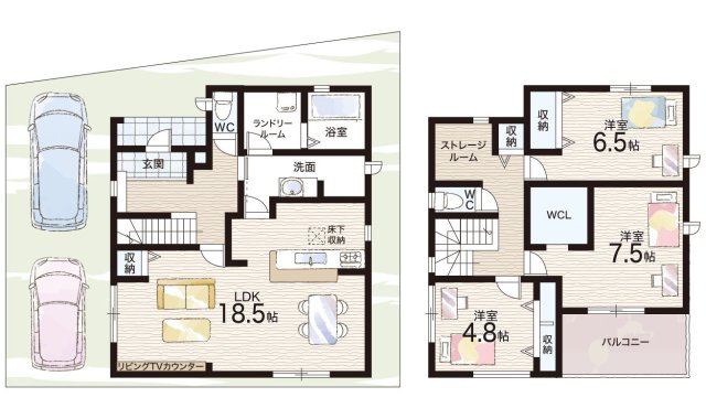 - ※完成予想図やCG合成画像は、門塀・植栽・庭・外観等、実際とは多少異なる場合があります。