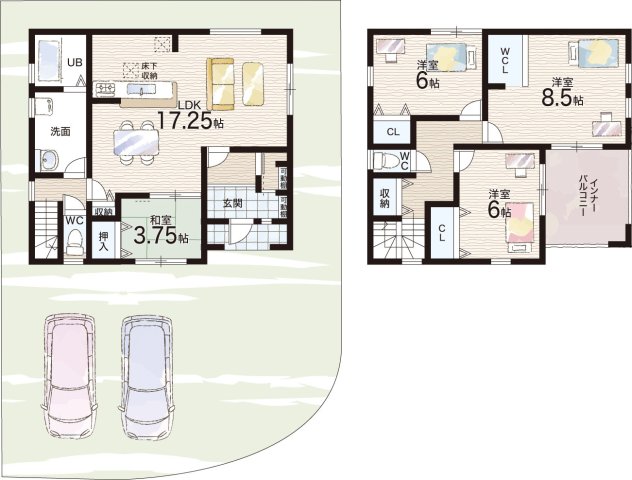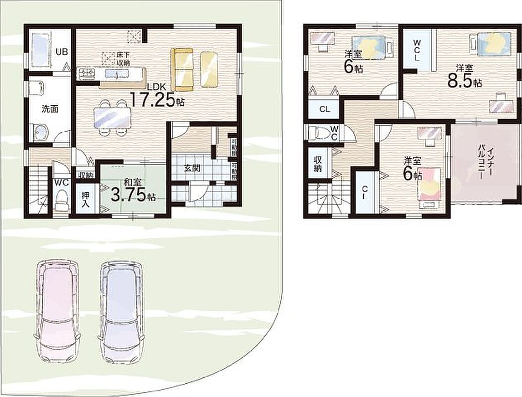 - ※完成予想図やCG合成画像は、門塀・植栽・庭・外観等、実際とは多少異なる場合があります。