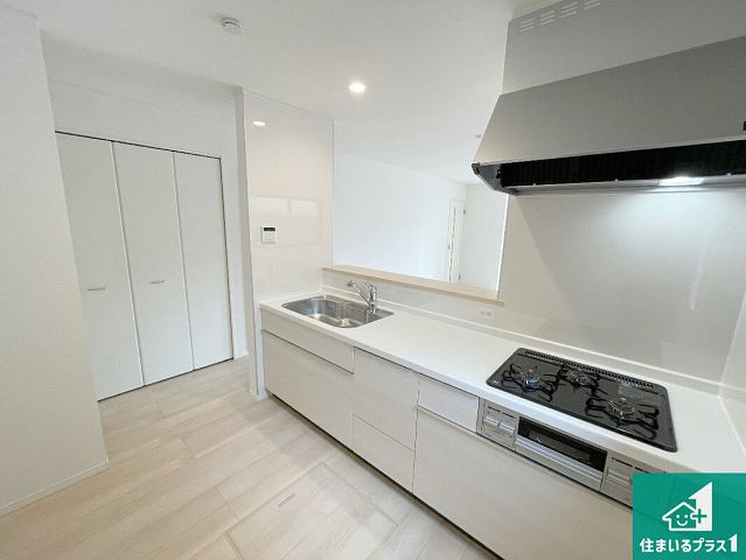 システムキッチン付きの物件です。きれい好きな方に一押しなピカピカの新築物件です。浴室乾燥機のあるお風呂場は洗濯物を干すときにも便利です。住まい探しは是非私どもにもサポートさせてください。