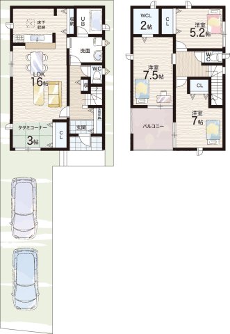 2号地 間取り 3LDK+S(納戸) 価格 3680万円 建物面積 103.27m2 土地面積 100.93m2 -