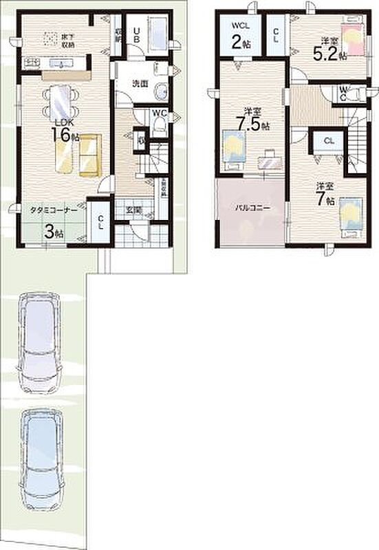 | 駐車場 | 2台 | 道路の幅員 | 南側8.6m公道 |