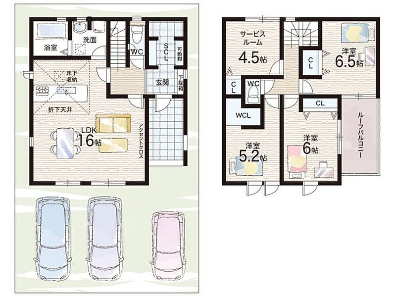 - ※完成予想図やCG合成画像は、門塀・植栽・庭・外観等、実際とは多少異なる場合があります。