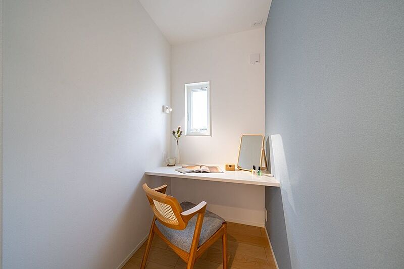 ナチュラルな雰囲気のLDKはホッと安らげる空間となっています。LDKの一角にはワークコーナーがあり、テレワークやお子様の宿題スペース、趣味のスペースなど様々な用途にご活用いただけます。土間クロークやコントロールクローク、ファミリークロークといった収納も充実しています。