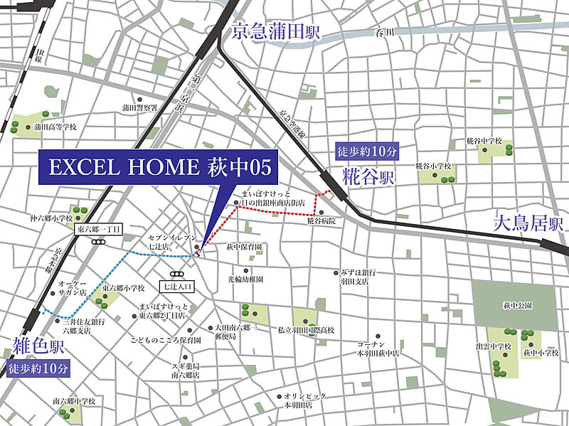 京急本線「京急蒲田」駅 徒歩16分 京急空港線「糀谷」駅 徒歩10分 京急本線「雑色」駅 徒歩11分 |