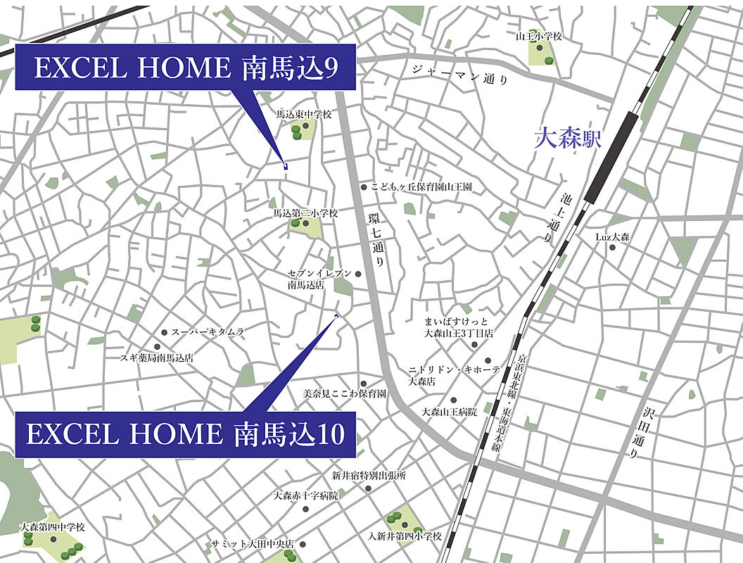 JR京浜東北・根岸線「大森」駅 徒歩16分 都営浅草線「西馬込」駅 徒歩20分 |