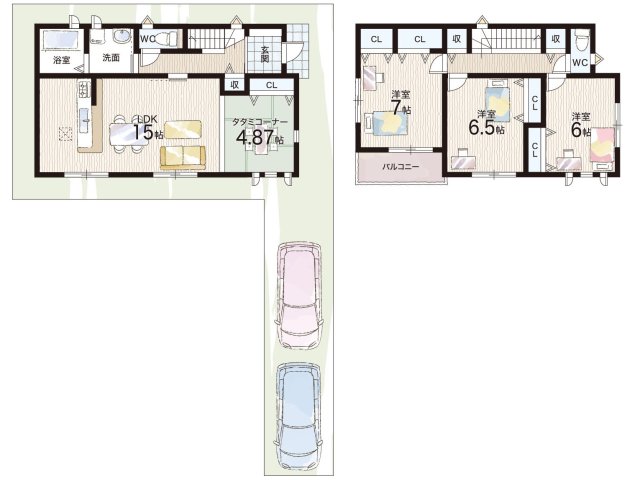 | 駐車場 | 2台 | 道路の幅員 | 南側7.8m公道 |