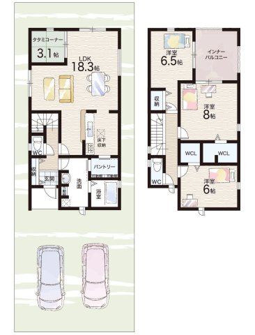 - ※完成予想図やCG合成画像は、門塀・植栽・庭・外観等、実際とは多少異なる場合があります。