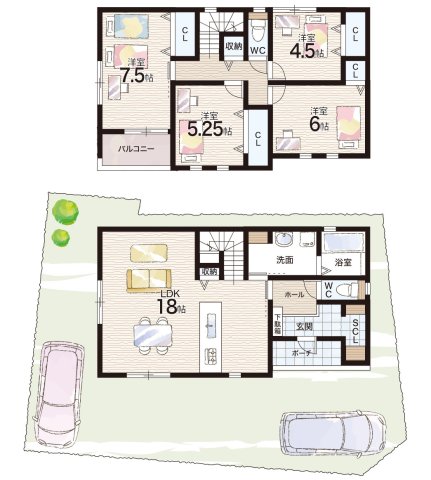 - ※完成予想図やCG合成画像は、門塀・植栽・庭・外観等、実際とは多少異なる場合があります。