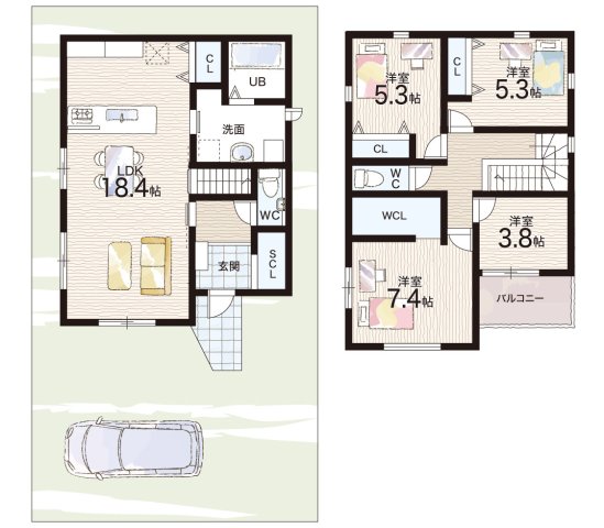 - ※完成予想図やCG合成画像は、門塀・植栽・庭・外観等、実際とは多少異なる場合があります。