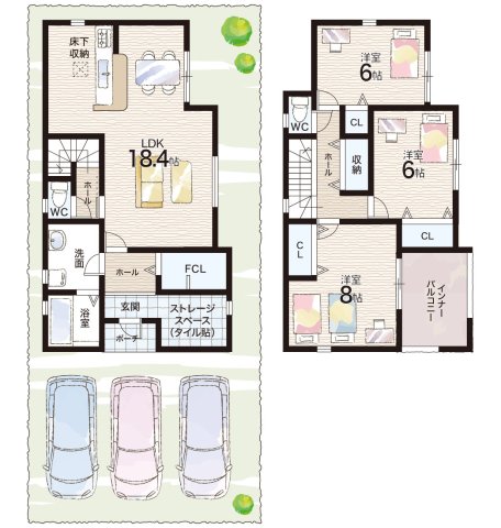 | 駐車場 | 3台 | 道路の幅員 | 西側6.0m公道 |