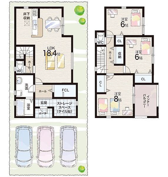 | 駐車場 | 3台 | 道路の幅員 | 西側6.0m公道 |
