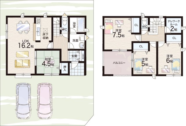 - ※完成予想図やCG合成画像は、門塀・植栽・庭・外観等、実際とは多少異なる場合があります。