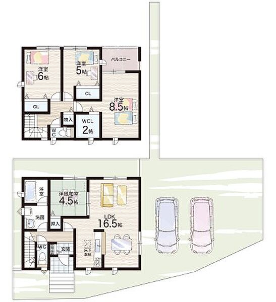 - ※完成予想図やCG合成画像は、門塀・植栽・庭・外観等、実際とは多少異なる場合があります。