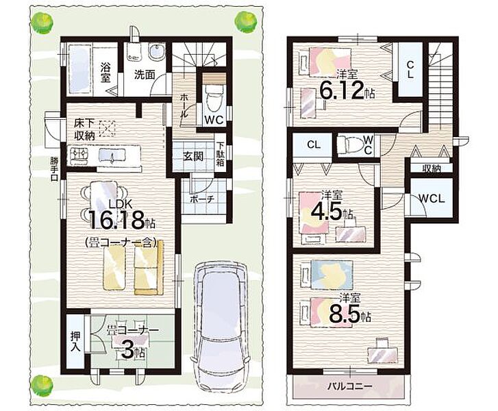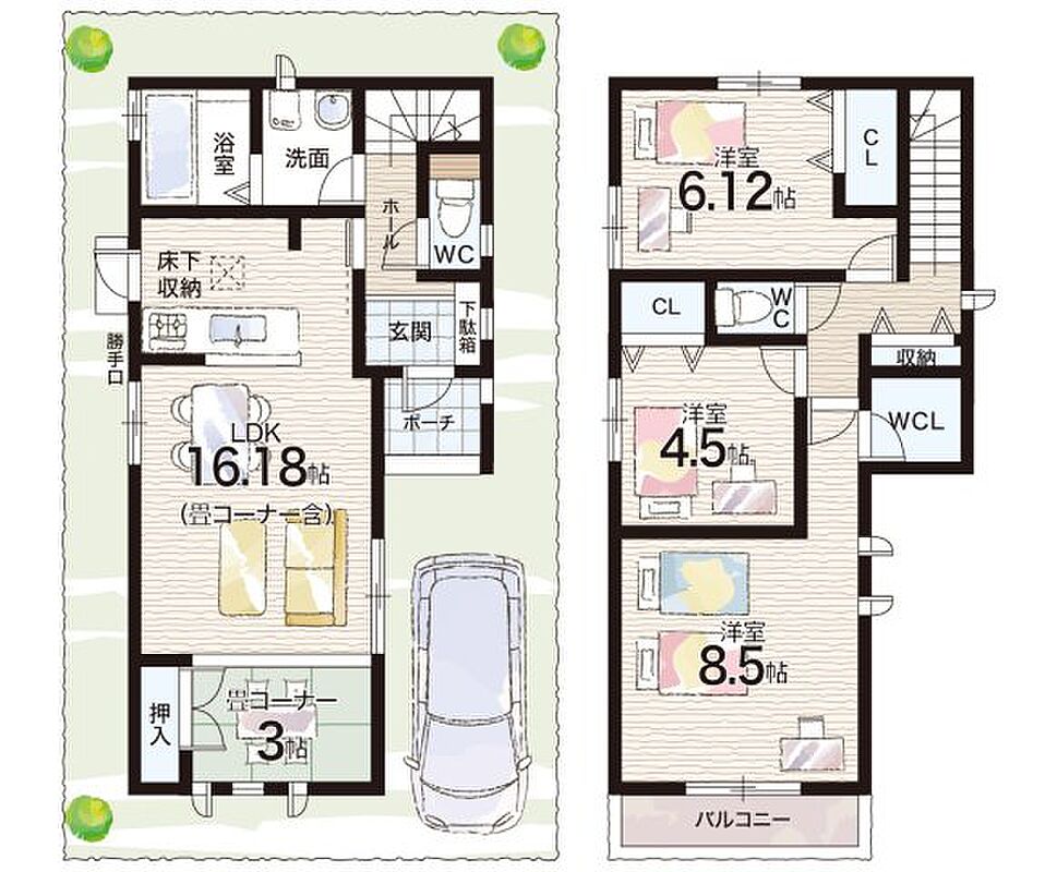 - ※完成予想図やCG合成画像は、門塀・植栽・庭・外観等、実際とは多少異なる場合があります。