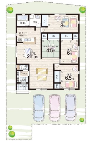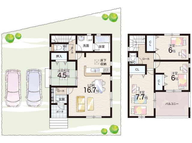 - ※完成予想図やCG合成画像は、門塀・植栽・庭・外観等、実際とは多少異なる場合があります。
