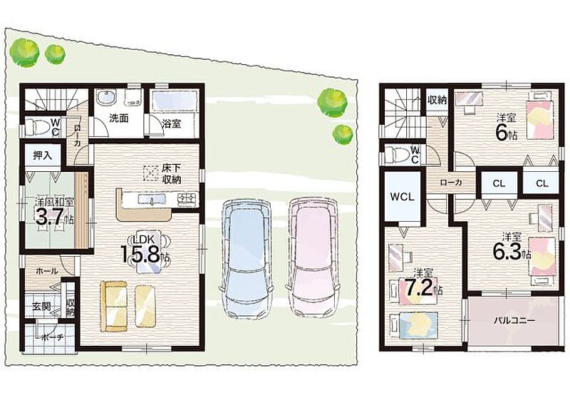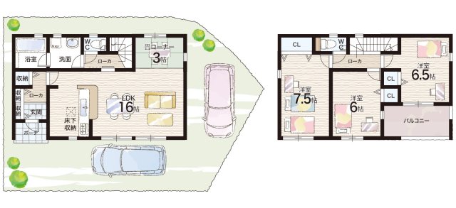 - ※完成予想図やCG合成画像は、門塀・植栽・庭・外観等、実際とは多少異なる場合があります。