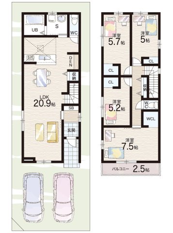 - ※完成予想図やCG合成画像は、門塀・植栽・庭・外観等、実際とは多少異なる場合があります。