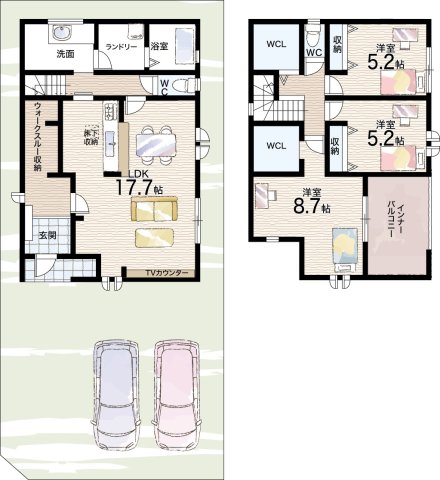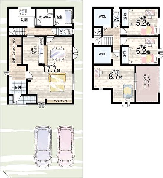 - ※完成予想図やCG合成画像は、門塀・植栽・庭・外観等、実際とは多少異なる場合があります。