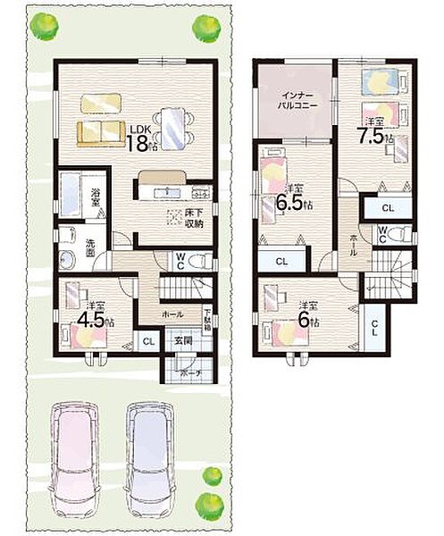 - ※完成予想図やCG合成画像は、門塀・植栽・庭・外観等、実際とは多少異なる場合があります。