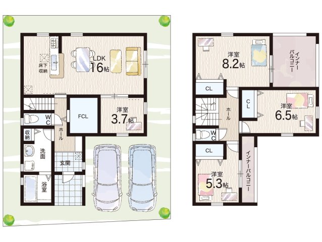 | 建物面積 | 106.81m2~112.61m2 | 土地面積 | 140.95m2~145.41m2 |