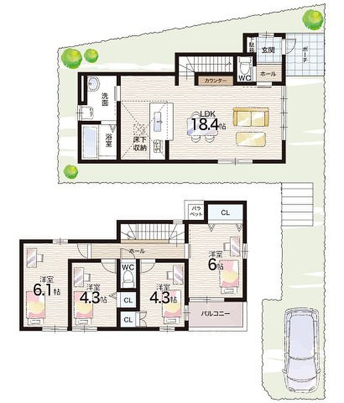- ※完成予想図やCG合成画像は、門塀・植栽・庭・外観等、実際とは多少異なる場合があります。