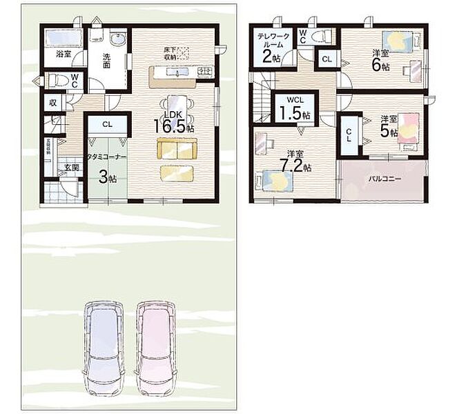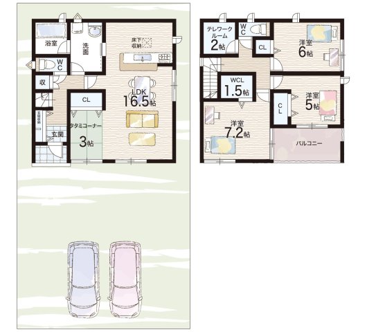 - ※完成予想図やCG合成画像は、門塀・植栽・庭・外観等、実際とは多少異なる場合があります。