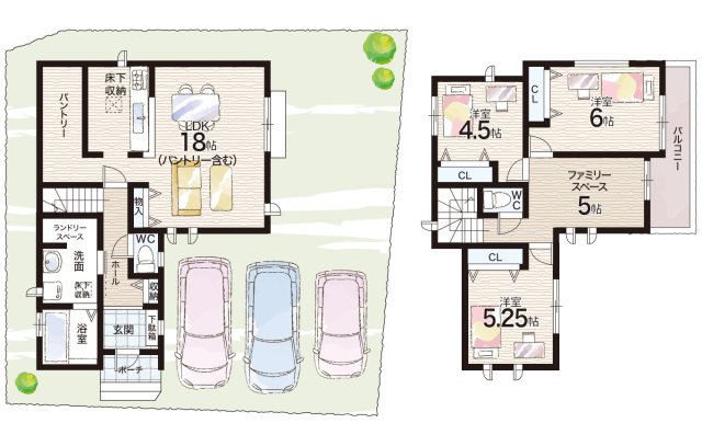 - ※完成予想図やCG合成画像は、門塀・植栽・庭・外観等、実際とは多少異なる場合があります。