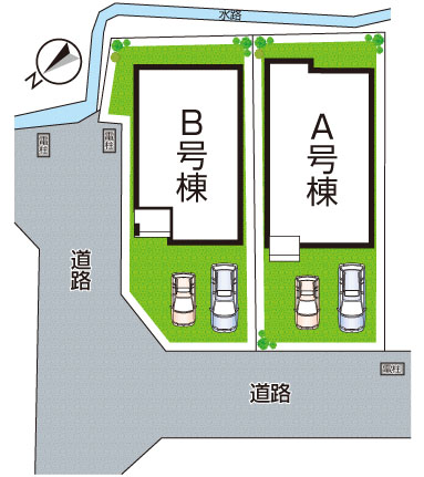 | 駐車場 | 2台 | 道路の幅員 | 北西側4.5m私道 |