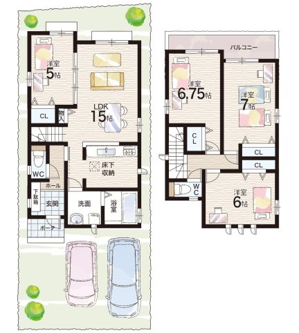 - ※完成予想図やCG合成画像は、門塀・植栽・庭・外観等、実際とは多少異なる場合があります。