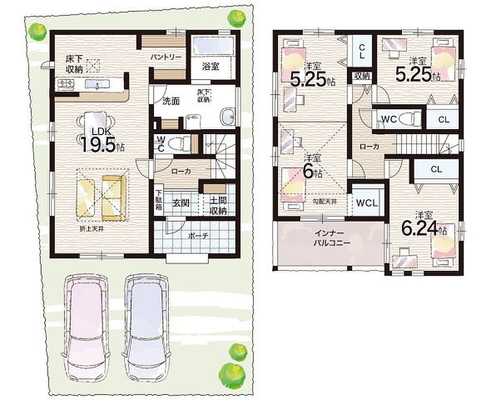 - ※完成予想図やCG合成画像は、門塀・植栽・庭・外観等、実際とは多少異なる場合があります。