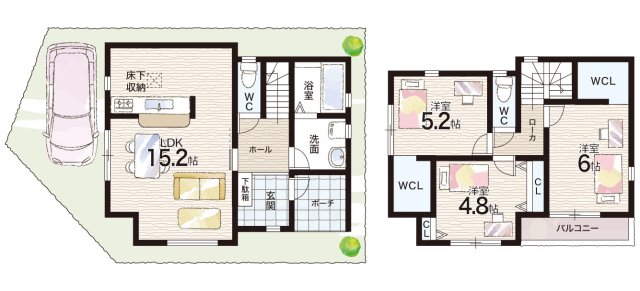 - ※完成予想図やCG合成画像は、門塀・植栽・庭・外観等、実際とは多少異なる場合があります。