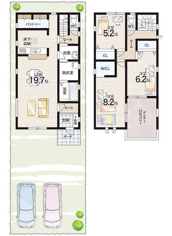 | 駐車場 | 2台 | 道路の幅員 | 南東側8.0m公道 |