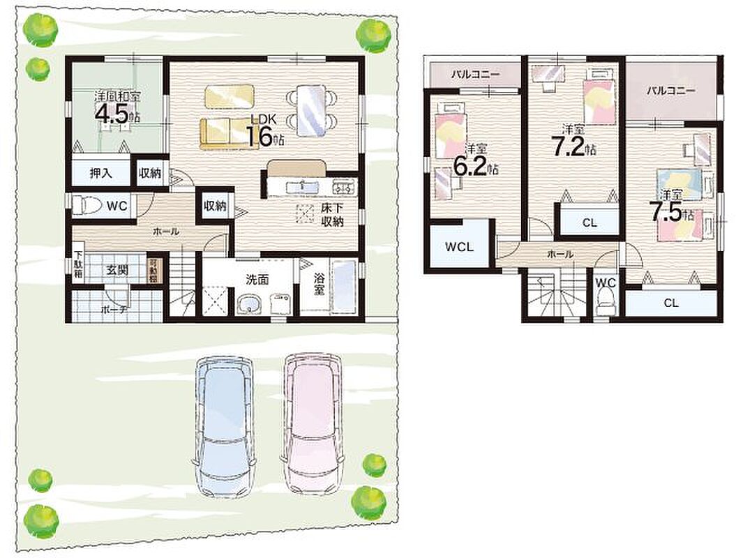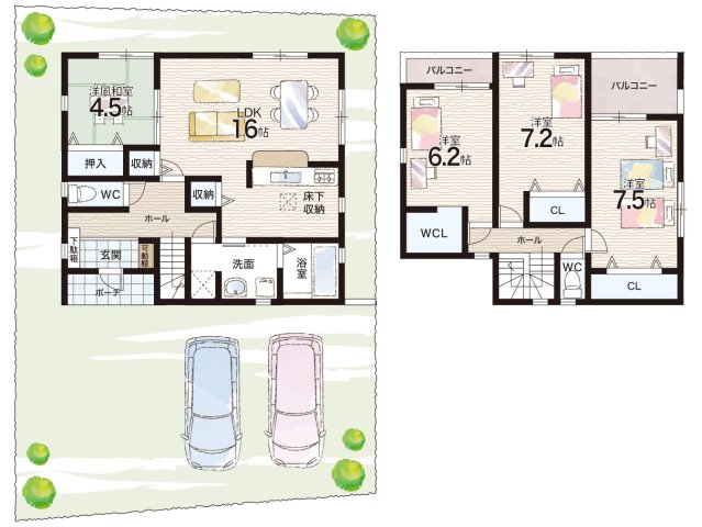 - ※完成予想図やCG合成画像は、門塀・植栽・庭・外観等、実際とは多少異なる場合があります。